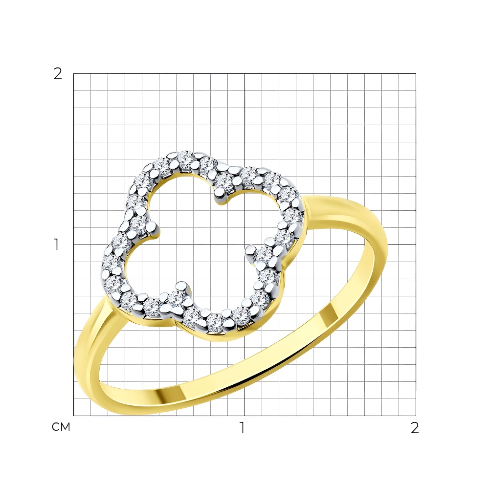Кольцо из серебра с фианитами, покрытие Вермель золото 999 пробы