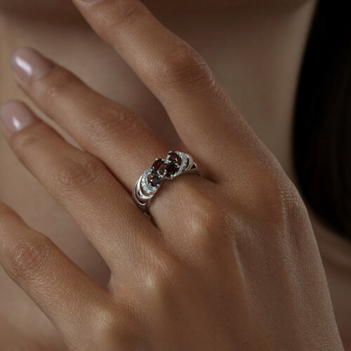 Кольцо из серебра с гранатами и фианитами