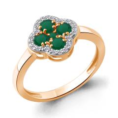 Кольцо из серебра с позолотой, агатами и фианитами