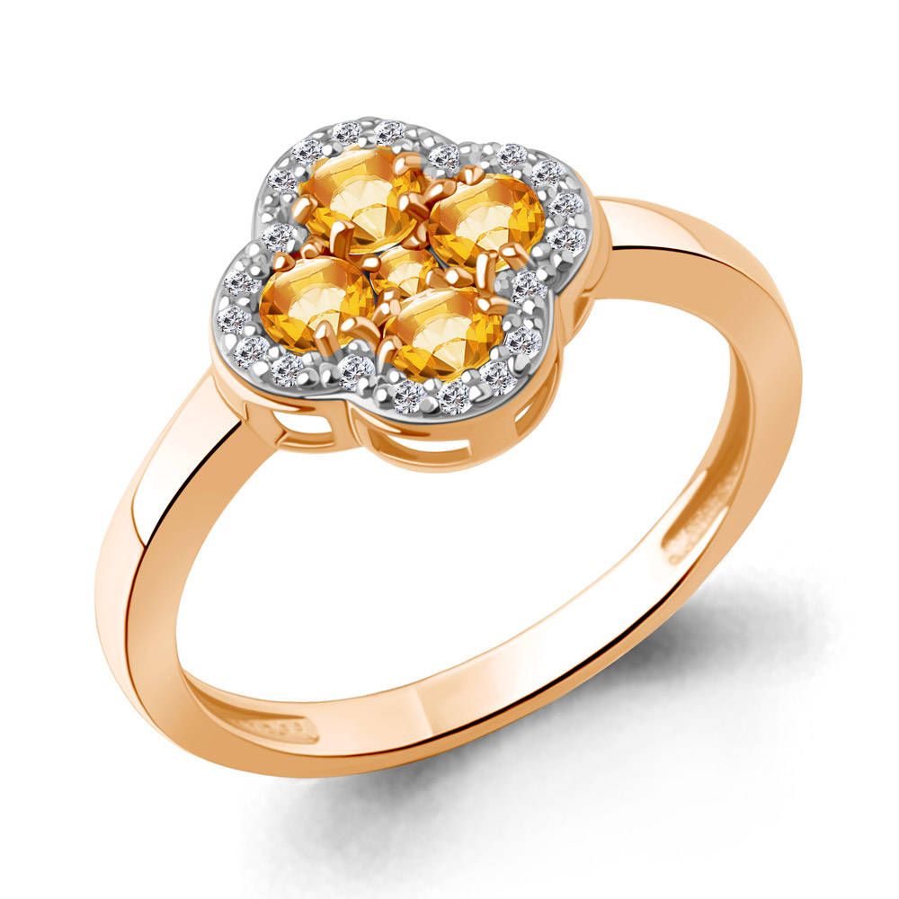 Кольцо из серебра с позолотой, цитринами и фианитами