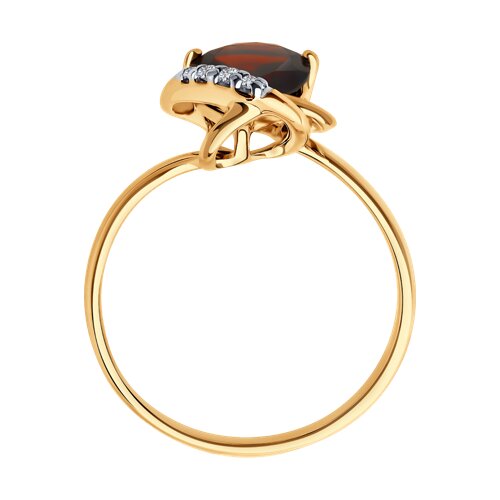 Кольцо из серебра с позолотой, гранатом и фианитами