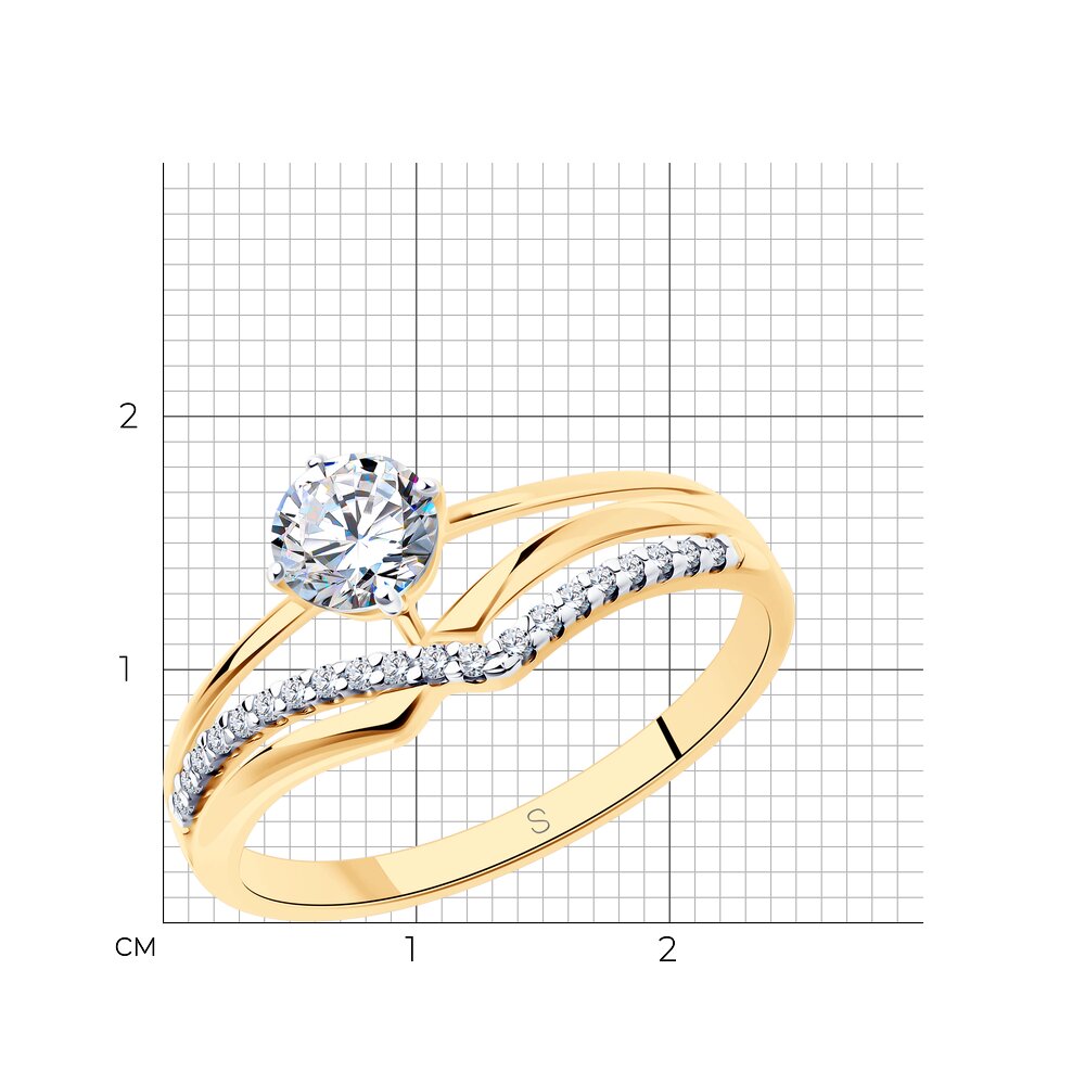Кольцо из серебра с позолотой и фианитами