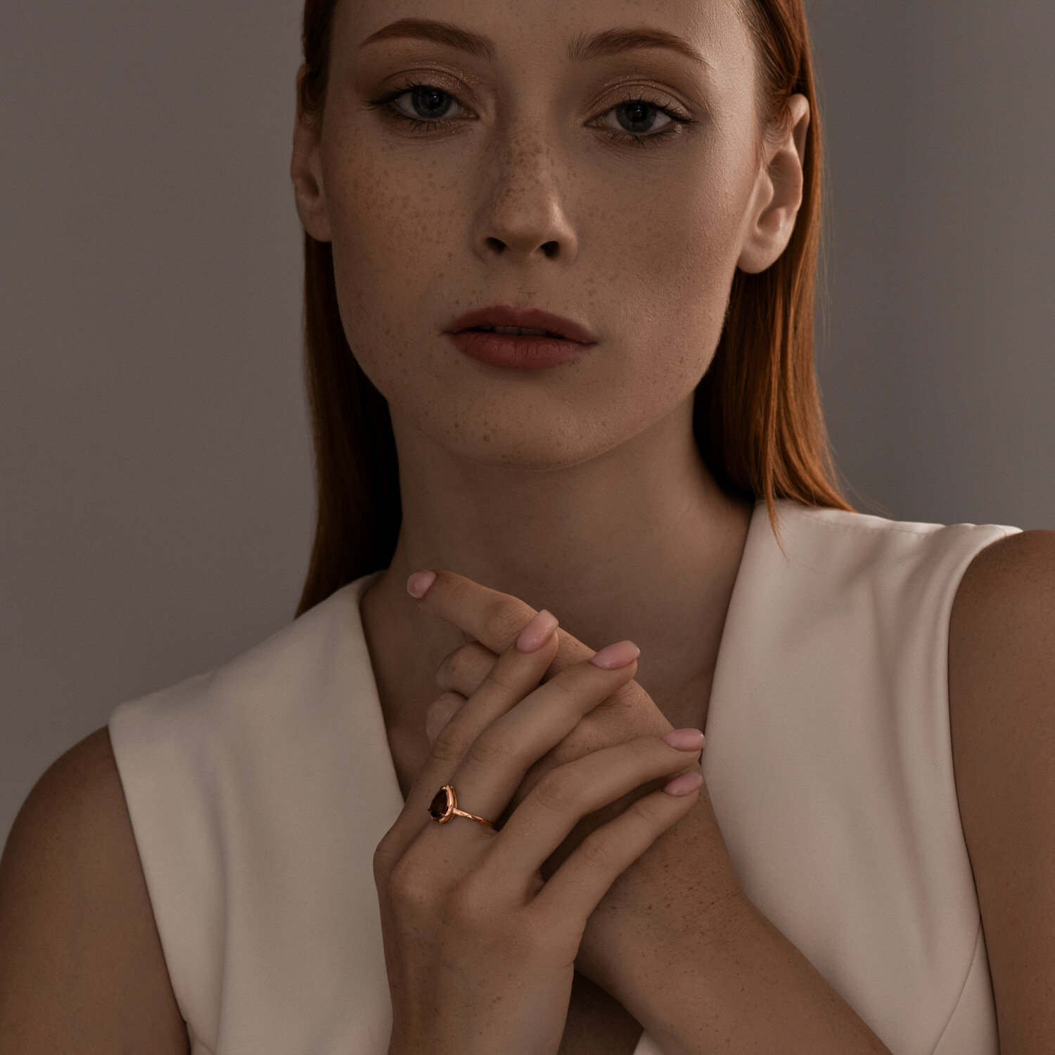 Кольцо из серебра с позолотой и раухтопазом