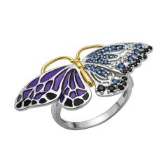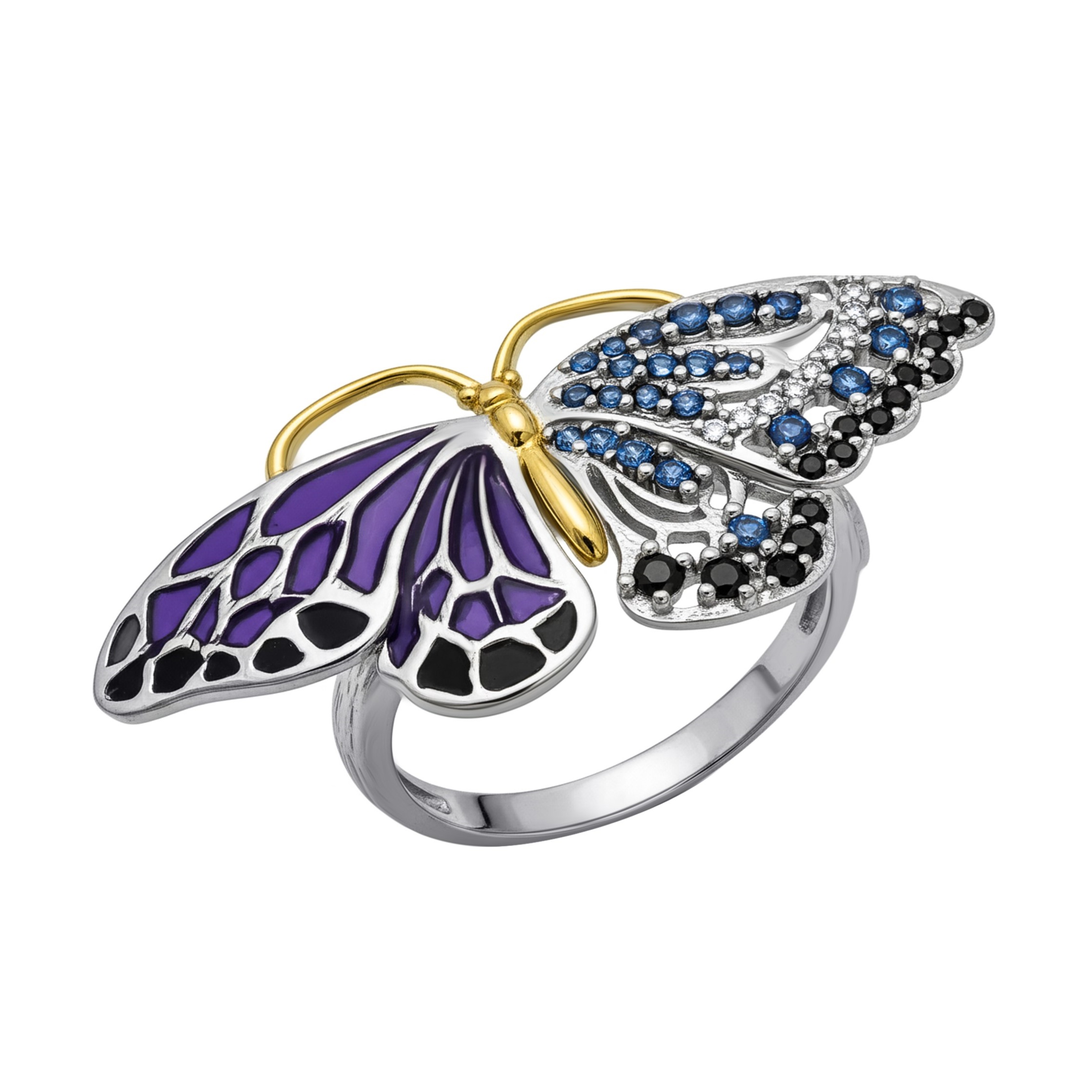 Кольцо из серебра с позолотой, шпинелью,эмалью и фианитами