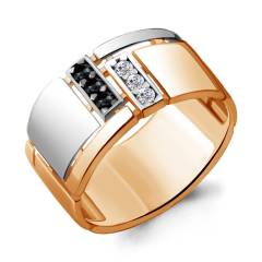 Кольцо из серебра с позолотой, ювелирными кристаллами и фианитами