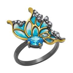 Кольцо из серебра с позолотой,эмалью и фианитами