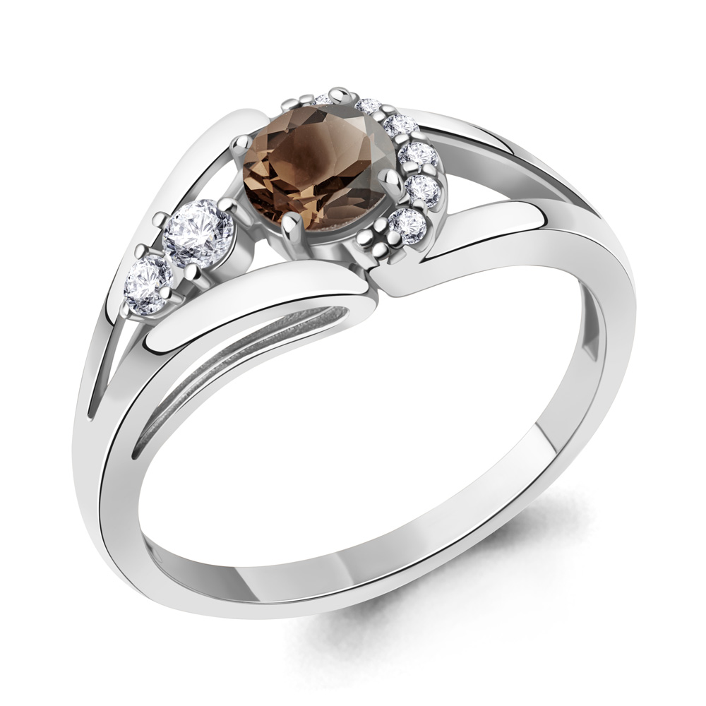 Кольцо из серебра с раухтопазом и фианитами
