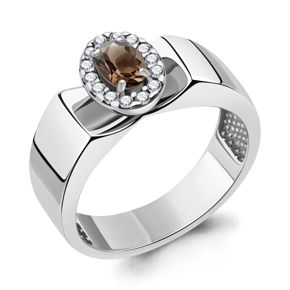 Кольцо из серебра с раухтопазом и фианитами