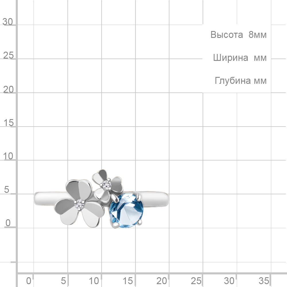 Кольцо из серебра с топазом Swiss и фианитами