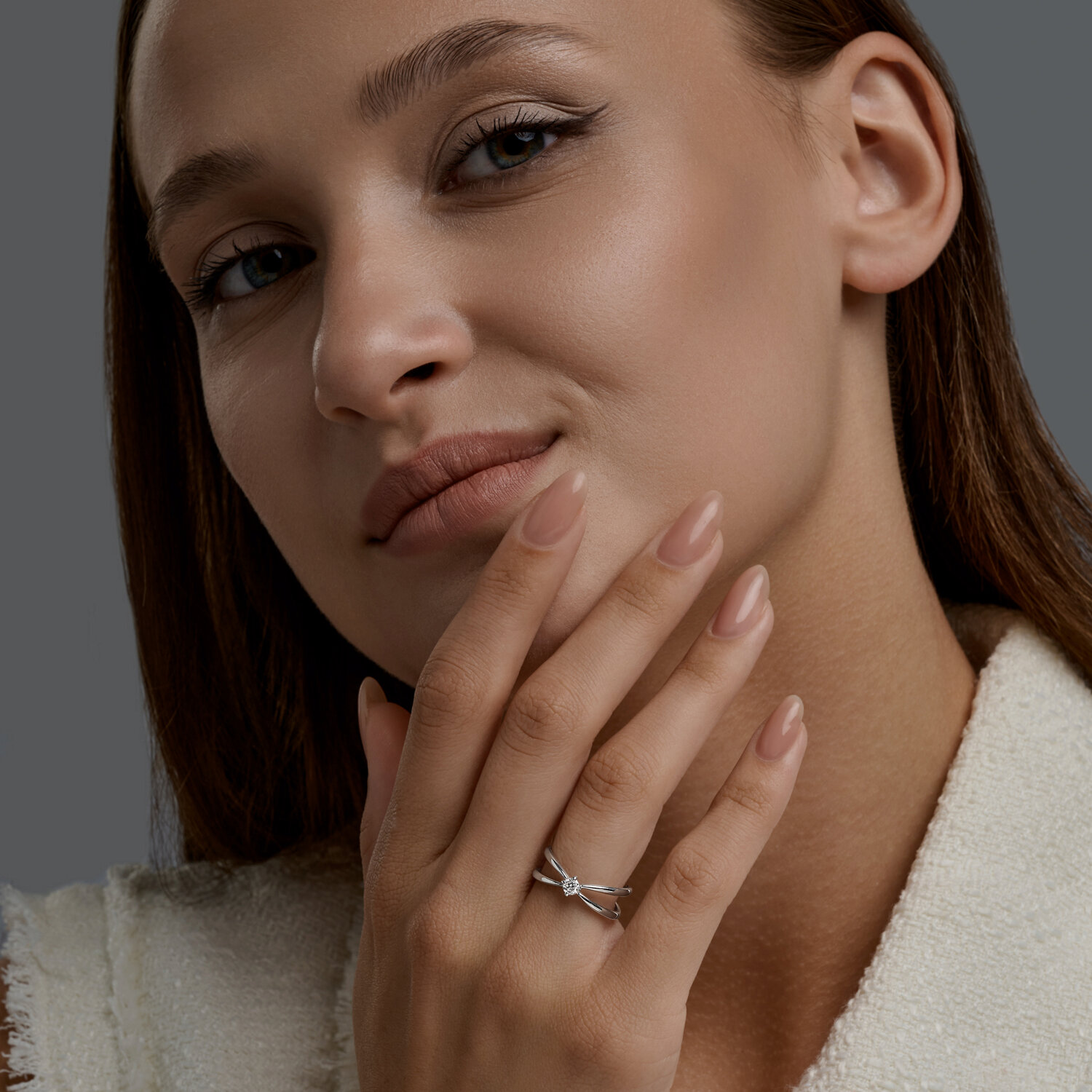 Кольцо из серебра с выращенным бриллиантом