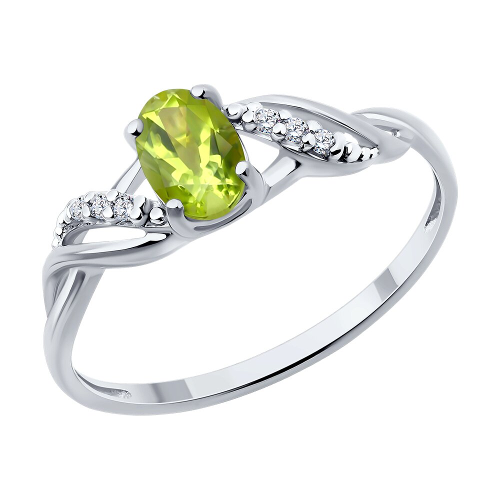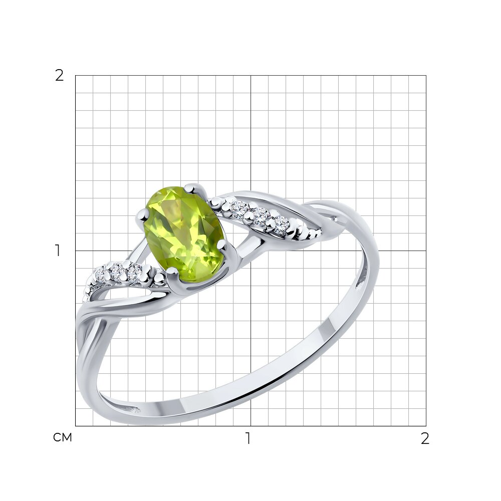 Кольцо из серебра с хризолитом и фианитами
