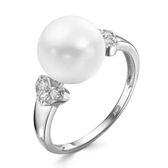 Кольцо из серебра с жемчугом и фианитами