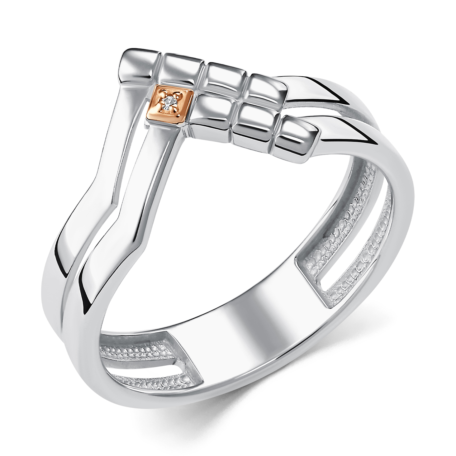 Кольцо из серебра с золотой вставкой и бриллиантом