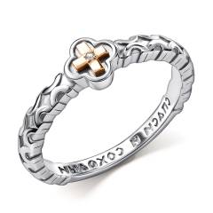 Кольцо из серебра с золотой вставкой и бриллиантом