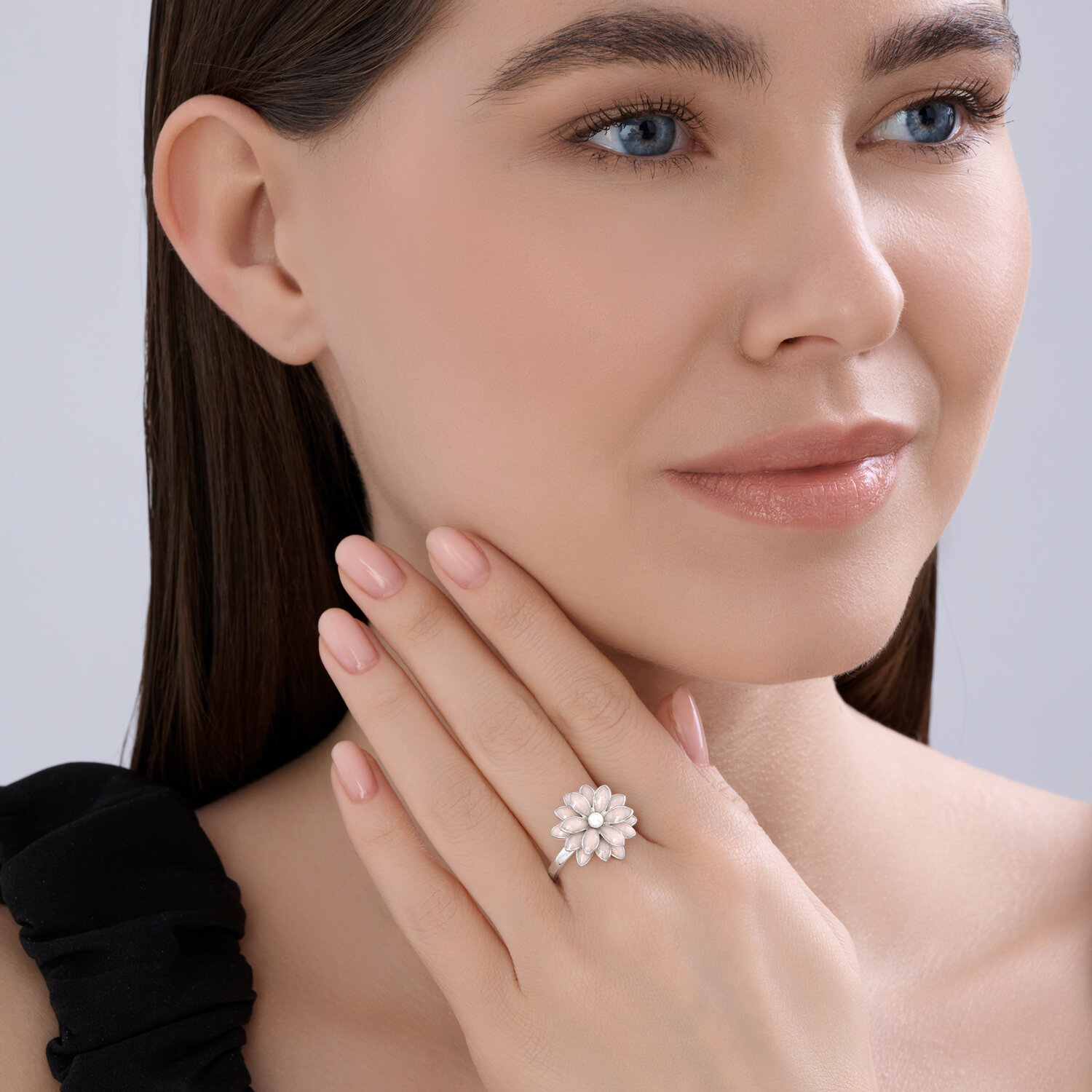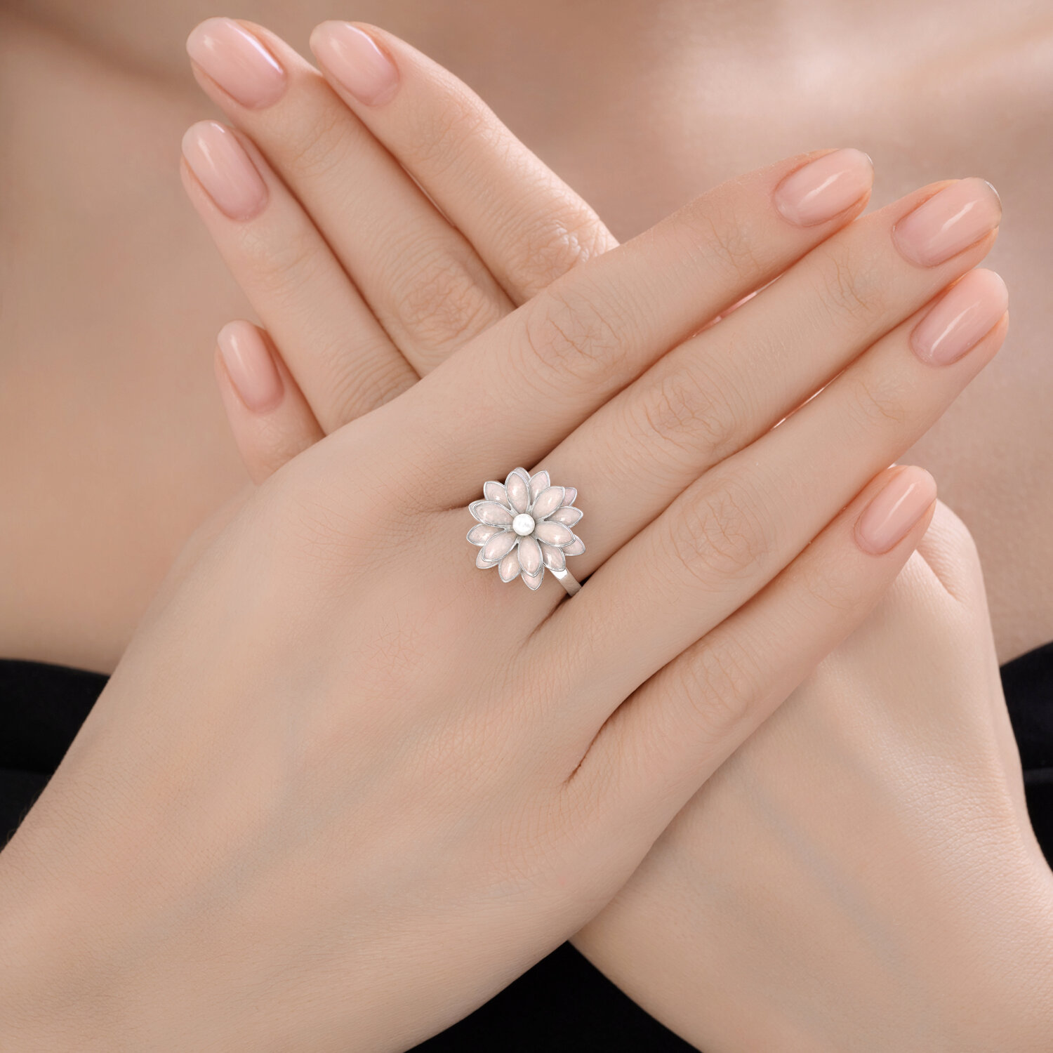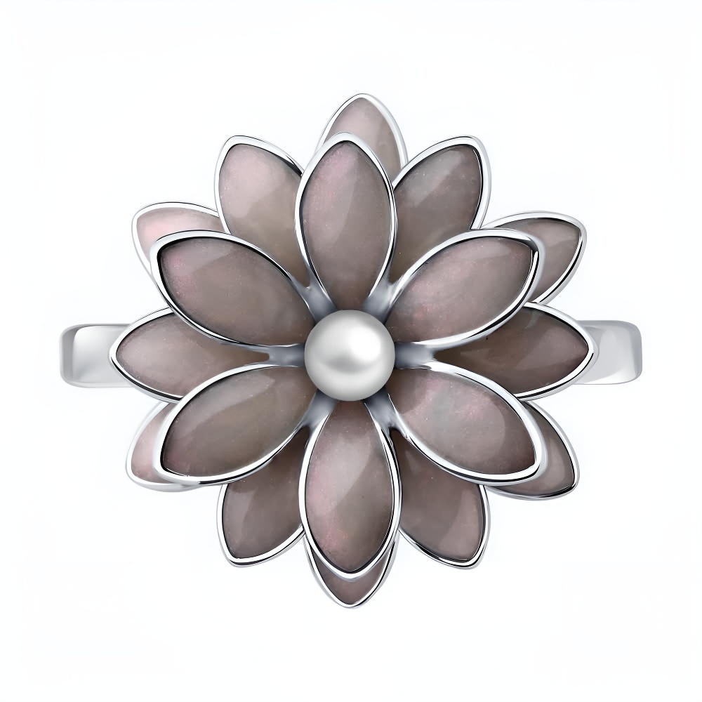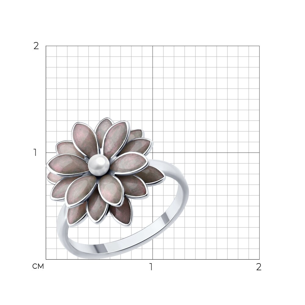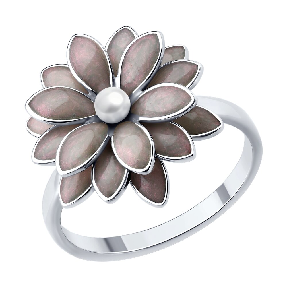 Кольцо из серебрас жемчугом и эмалью
