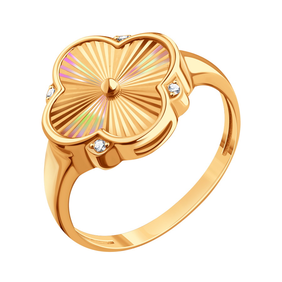 Кольцо из золота с алмазной гранью и фианитами