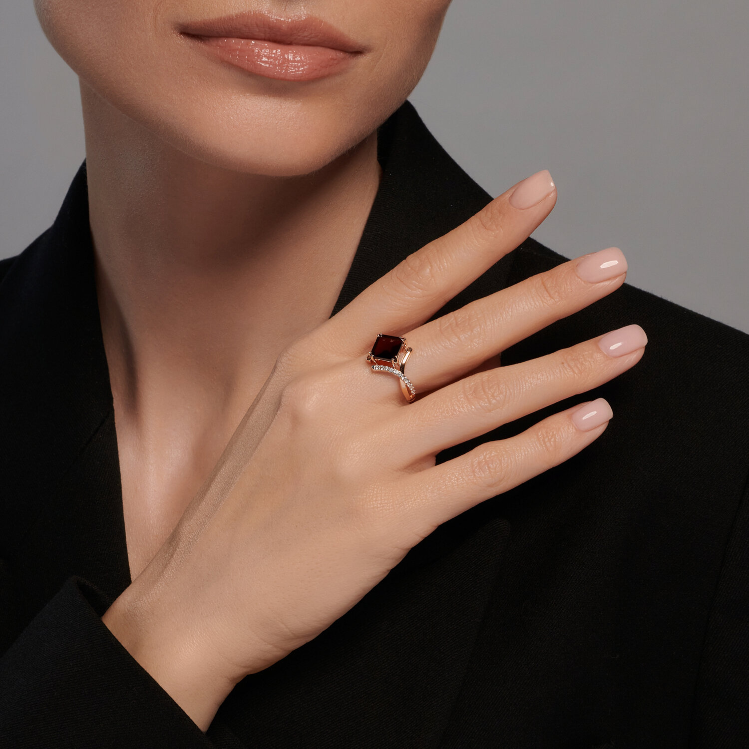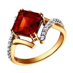 Кольцо из золота с гранатом и фианитами