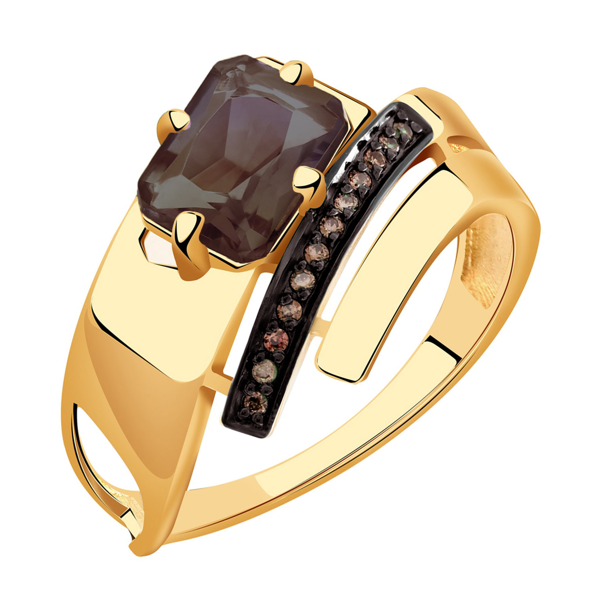 Кольцо из золота с раухтопазом и фианитами
