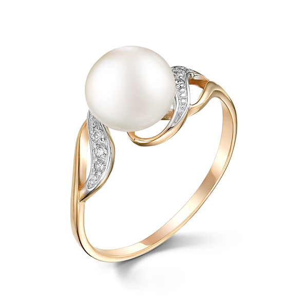 Кольцо из золота с жемчугом и фианитами