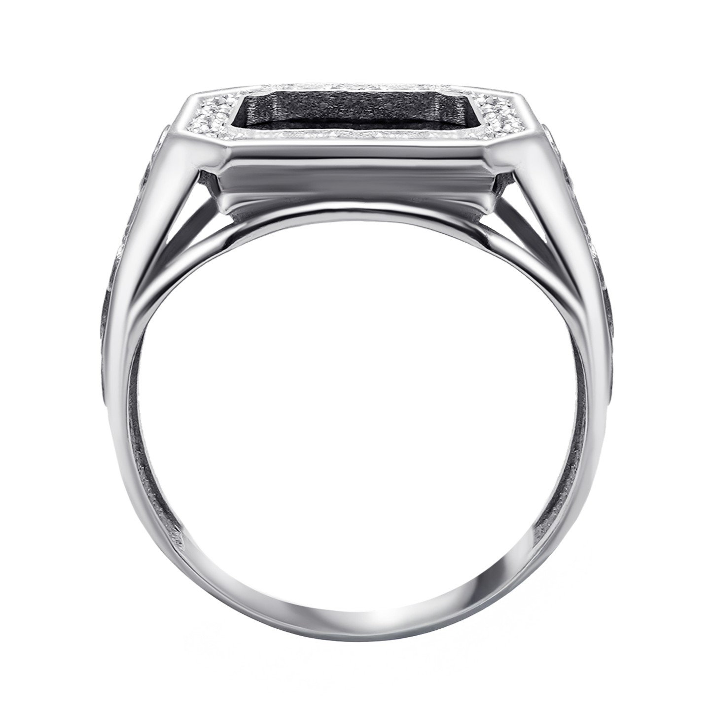 Кольцо-печатка из серебра с ониксом и фианитами