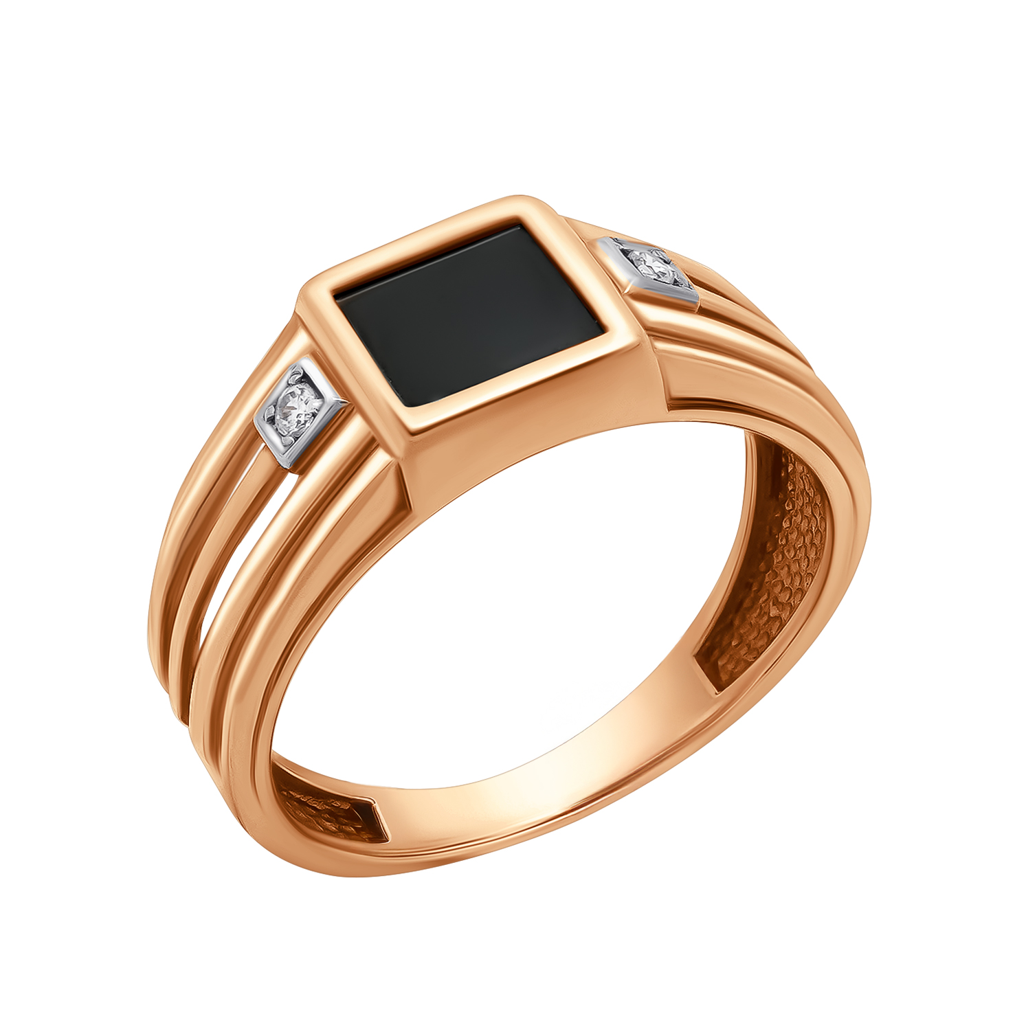 Кольцо-печатка из золота с ониксом и фианитами
