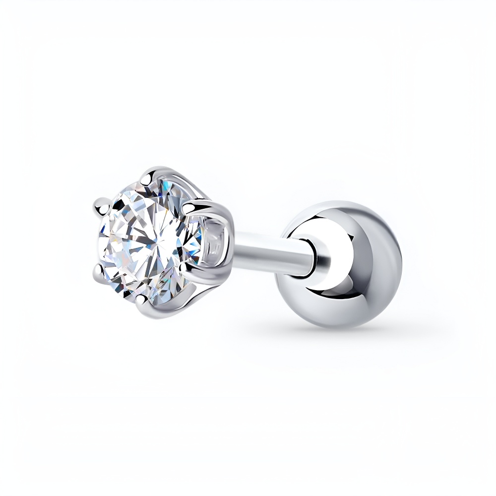 Одиночная серьга из серебра с фианитом