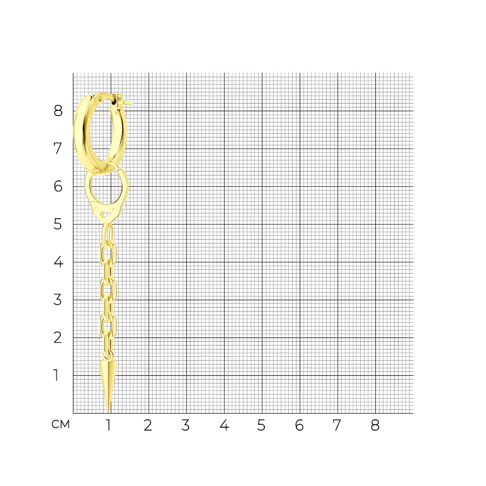 Одиночная серьга-трансформер из серебра, покрытие Вермель золото 999 пробы