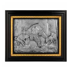 Панно обрамлено в лаконичную лакированную рамку из дерева, паспарту с золоченым орнаментом.