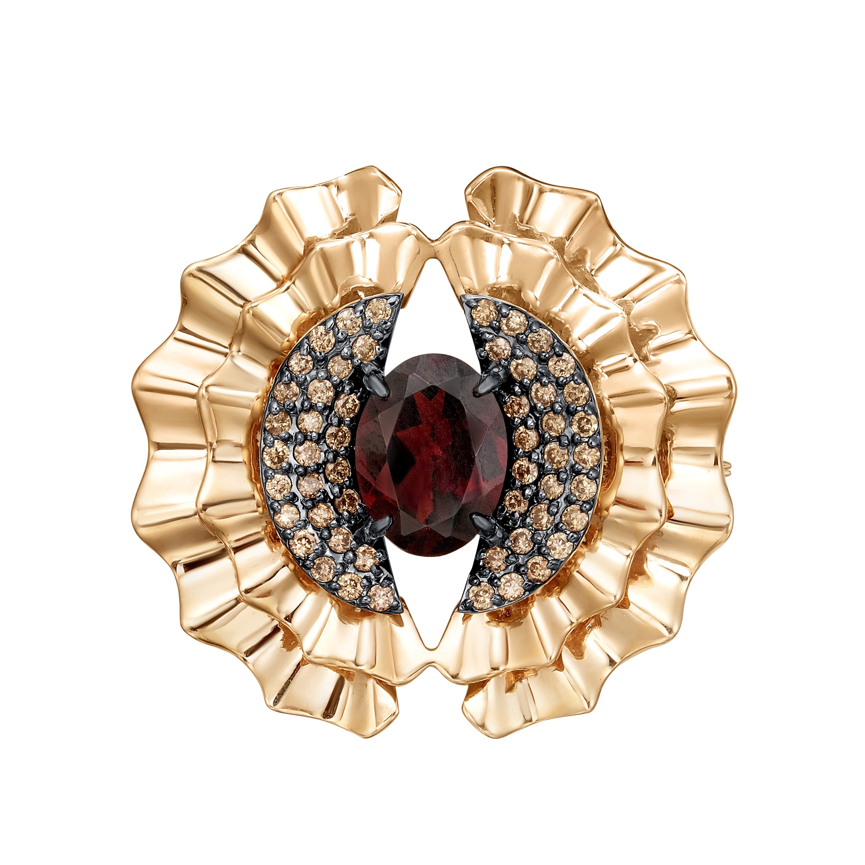 Подвеска-брошь из золота с бриллиантами и гранатом