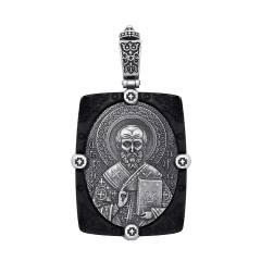 Подвеска Николай Чудотворец выполнена из дерева черный Граб и серебра 925 пробы с чернением.