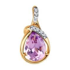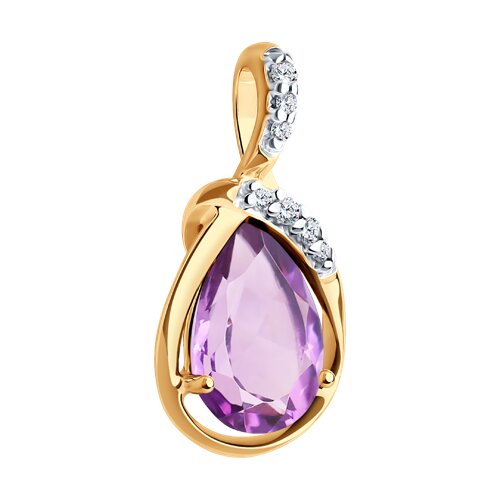 Подвеска из серебра с позолотой, аметистом и фианитами