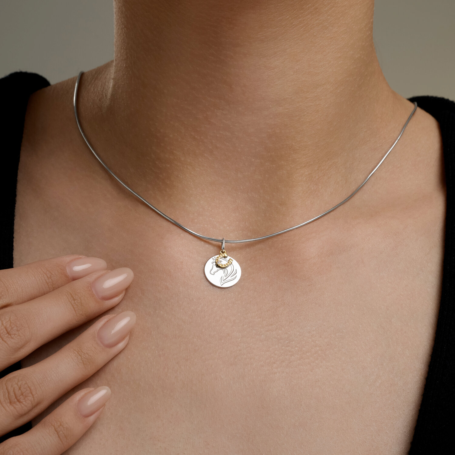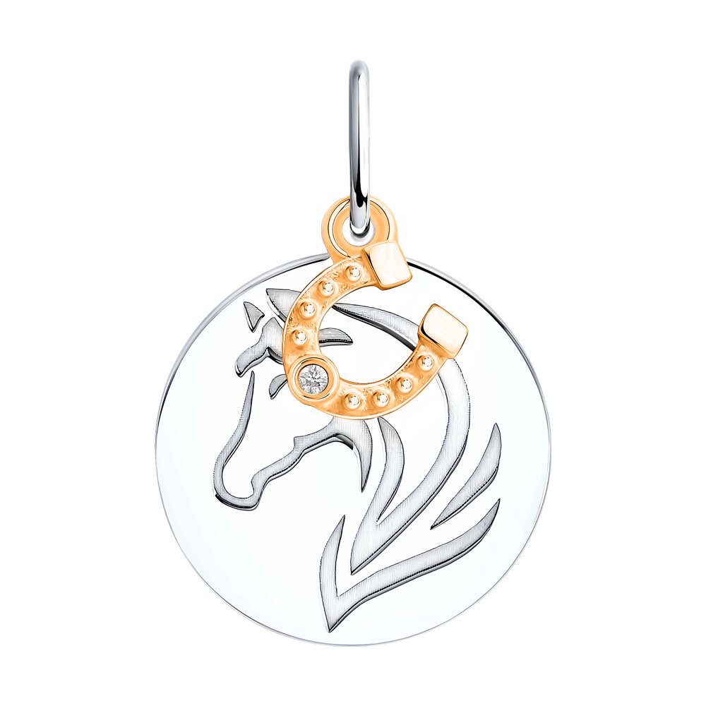Подвеска из серебра с позолотой и фианитом "Лошадь"