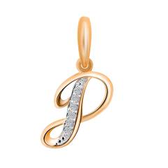 Подвеска-буква из золота с фианитами "Р"