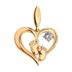 Подвеска из золота с фианитом "Пяточки в сердце"