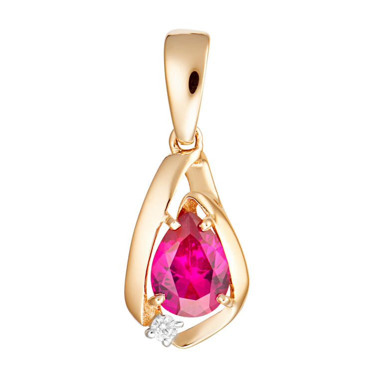 Подвеска из золота с рубиновым корундом и фианитами