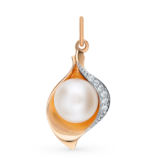 Подвеска из золота с жемчугом и фианитами