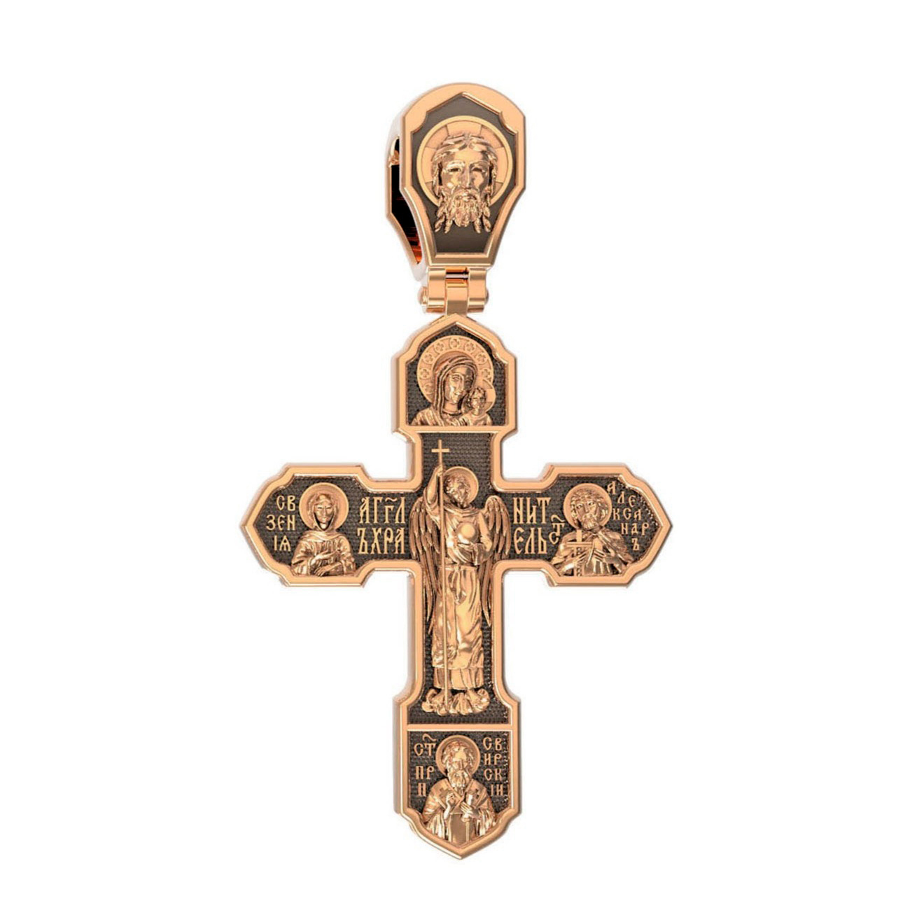 Центральную часть оборото креста занимает Ангел Хранитель.