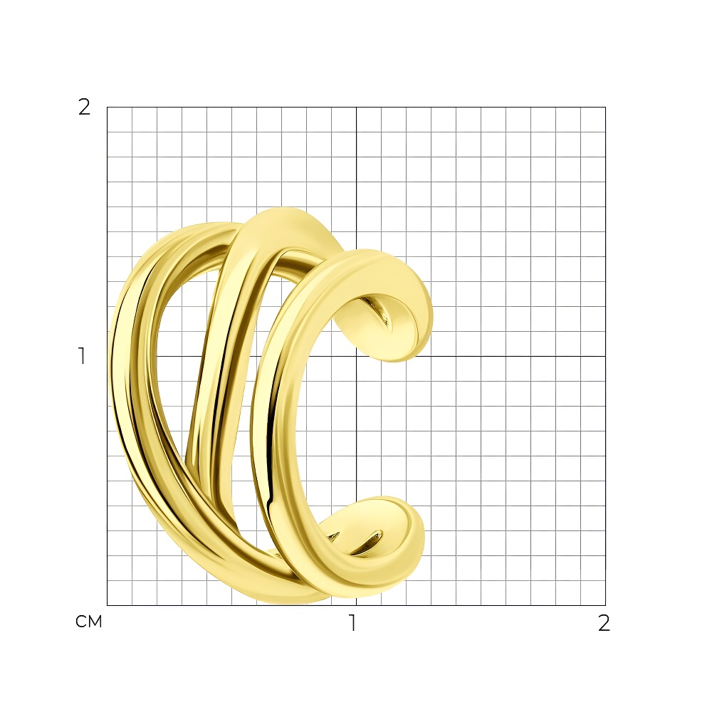 Серьга-кафф из серебра, покрытие Вермель золото 999 пробы