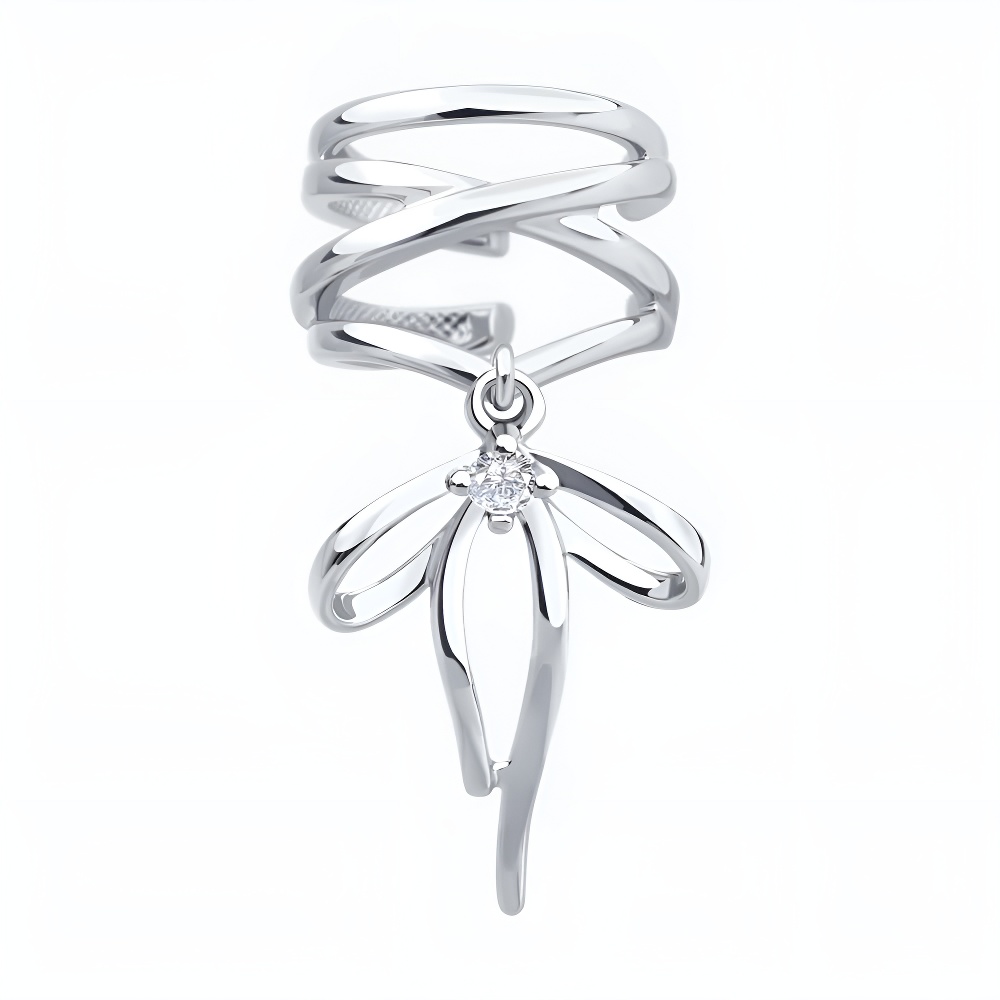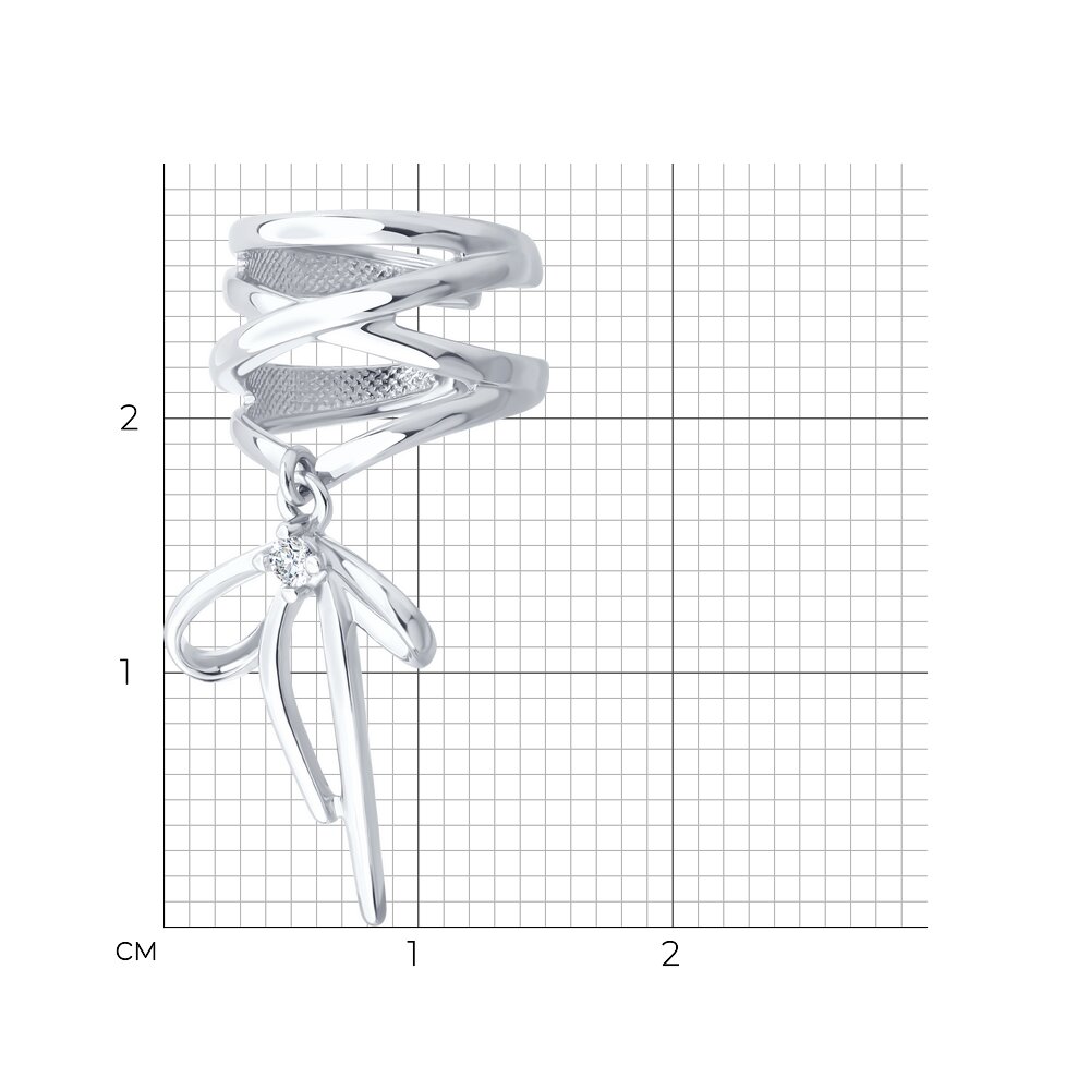 Серьга-кафф из серебра с фианитом