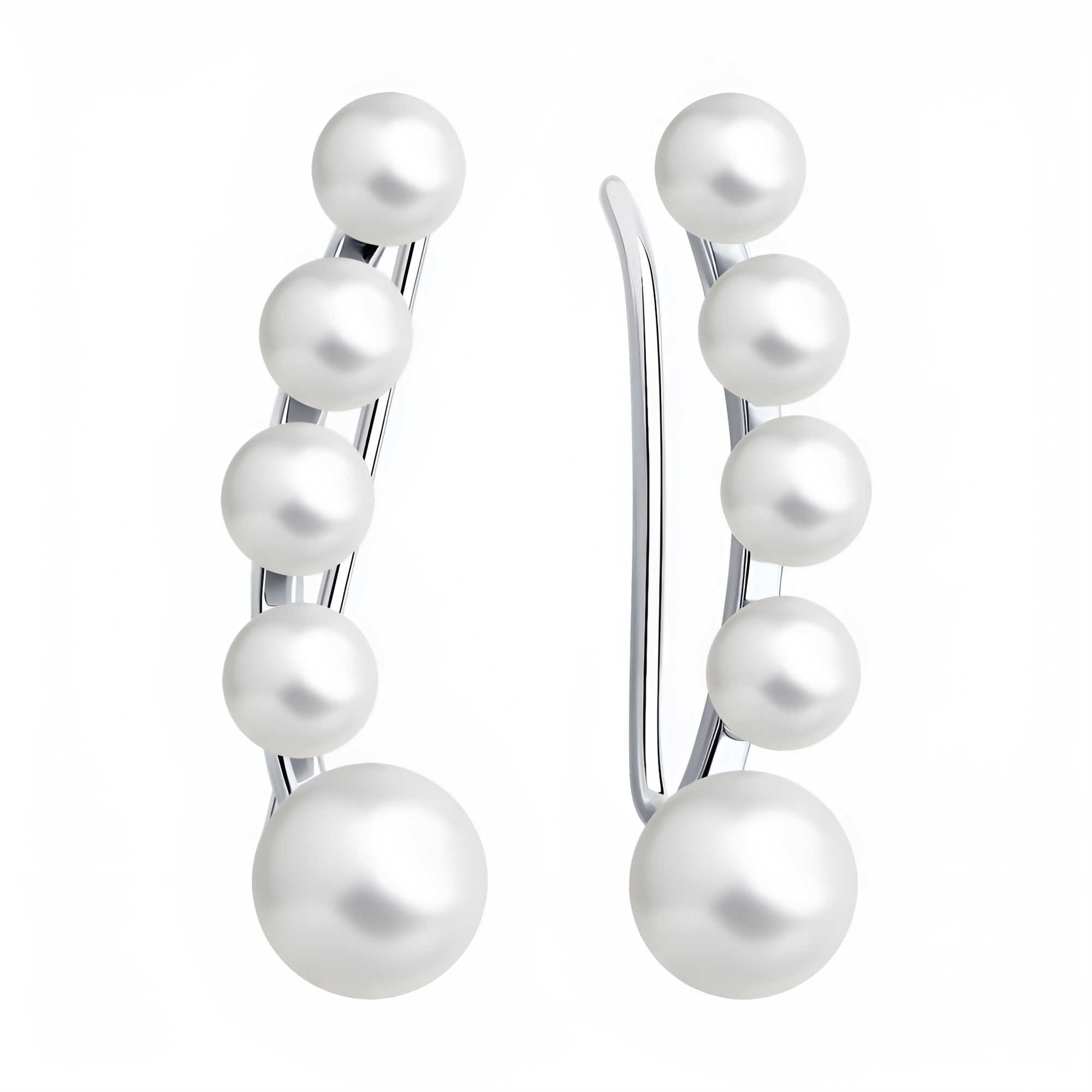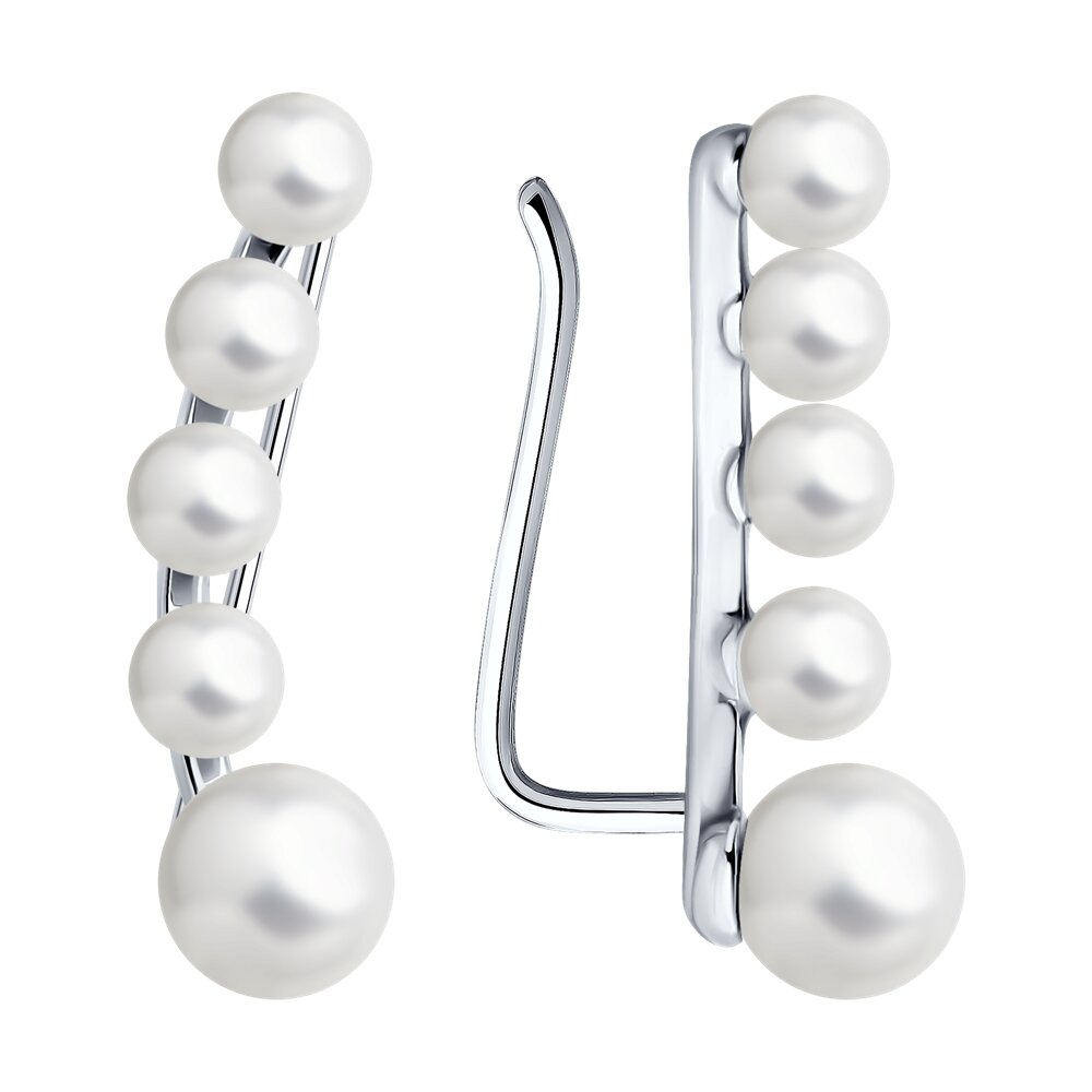 Серьги-эльфы из серебра с жемчугом