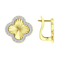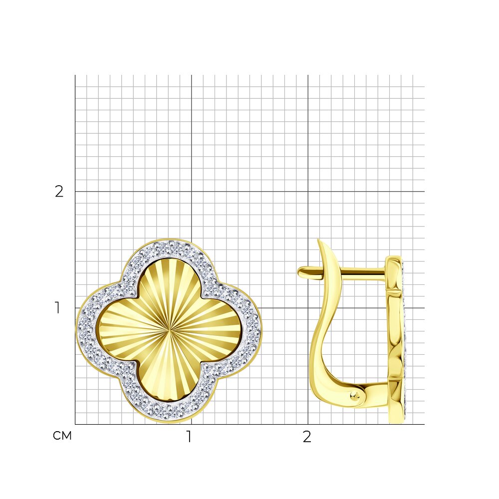 Серьги из лимонного золота с алмазной гранью и фианитами