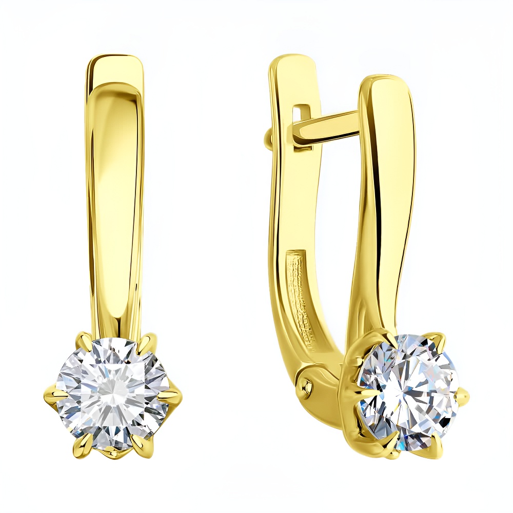 Серьги из лимонного золота с выращенными бриллиантами и рубином