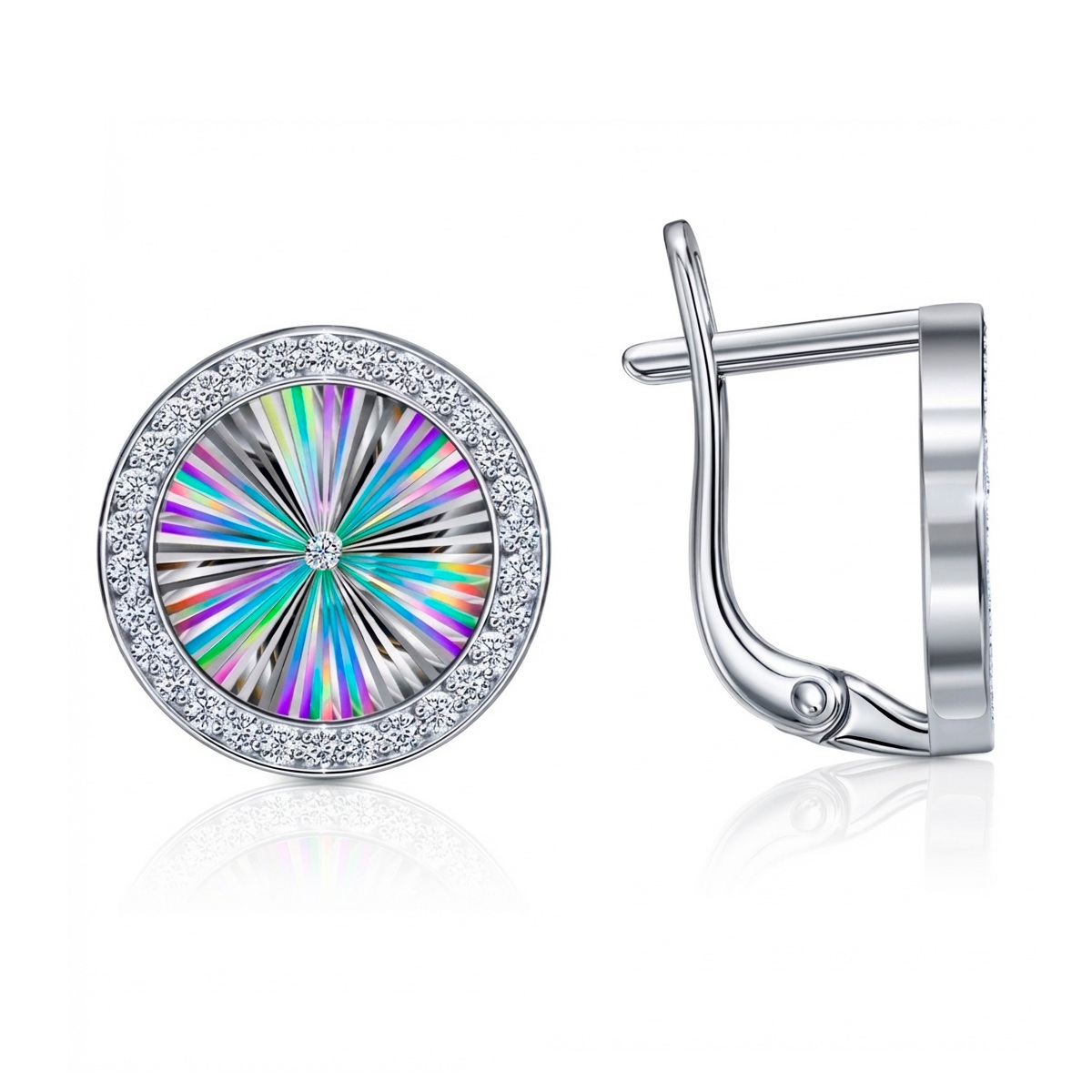 Серьги из серебра с алмазной гранью и фианитами