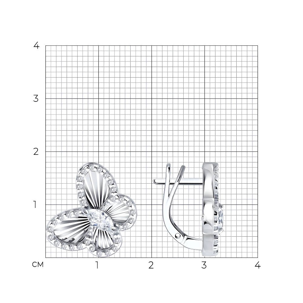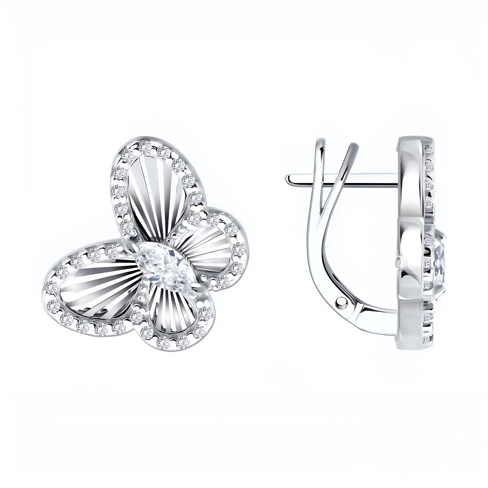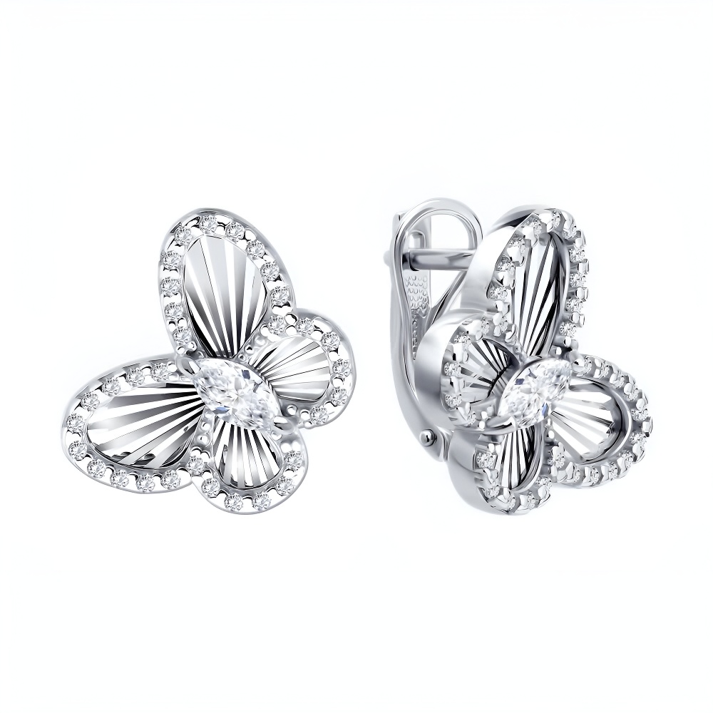 Серьги из серебра с алмазной гранью и фианитами