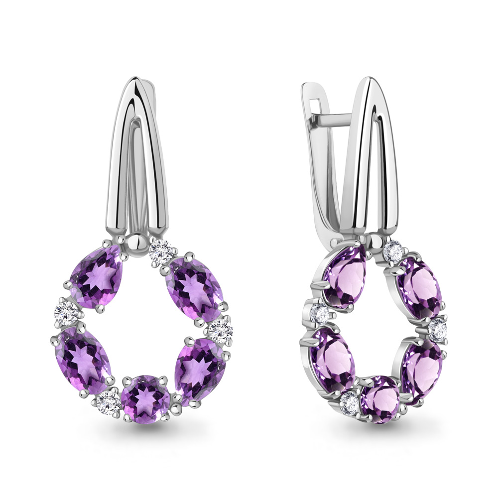 Серьги из серебра с аметистами и фианитами
