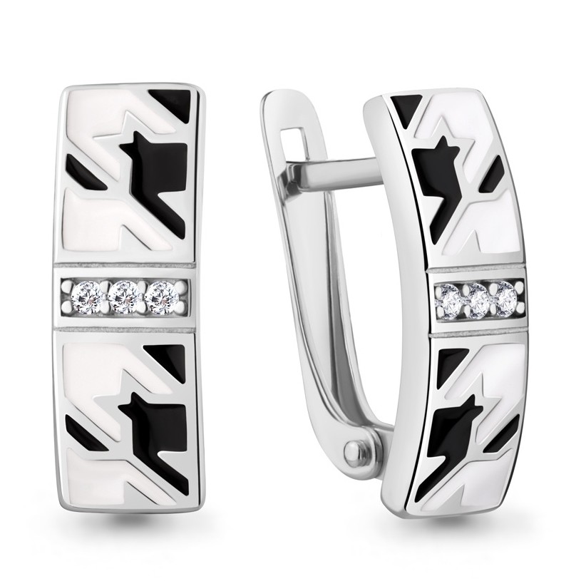 Серьги из серебра с эмалью и фианитами