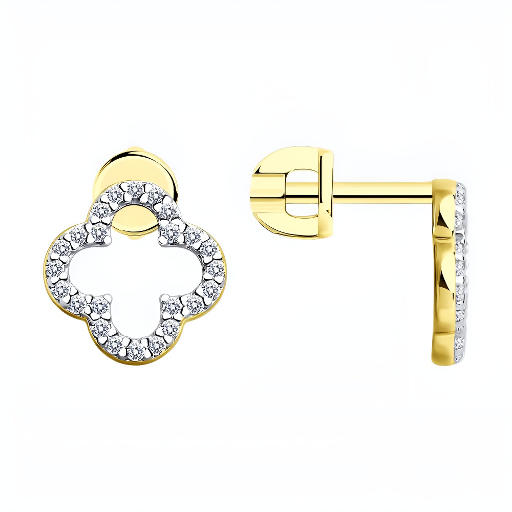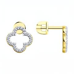 Серьги из серебра с фианитами, покрытие Вермель золото 999 пробы