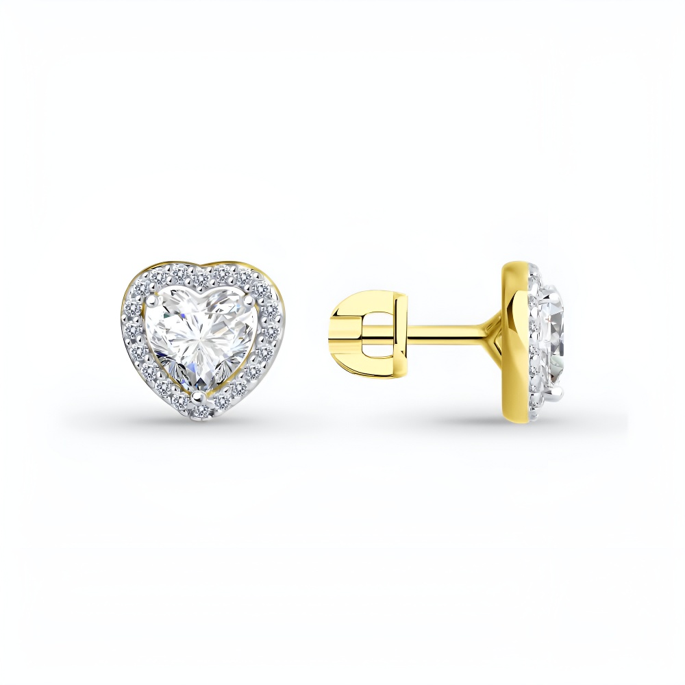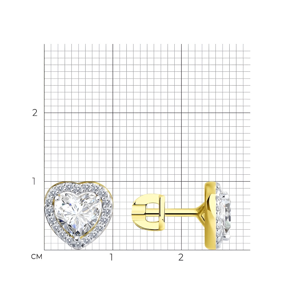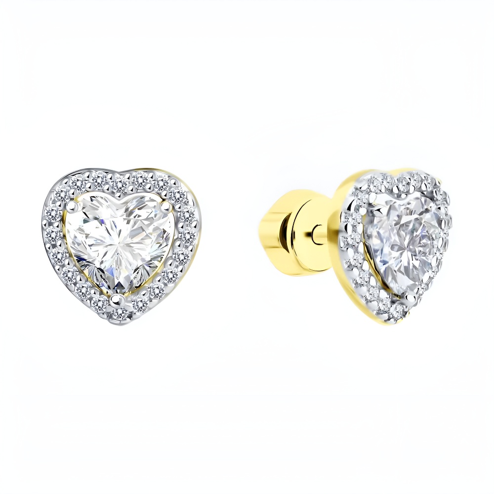 Серьги из серебра с фианитами, покрытие Вермель золото 999 пробы