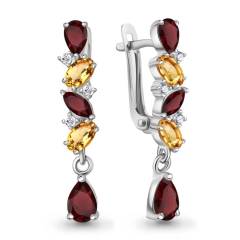 Серьги из серебра с гранатами, цитринами и фианитами