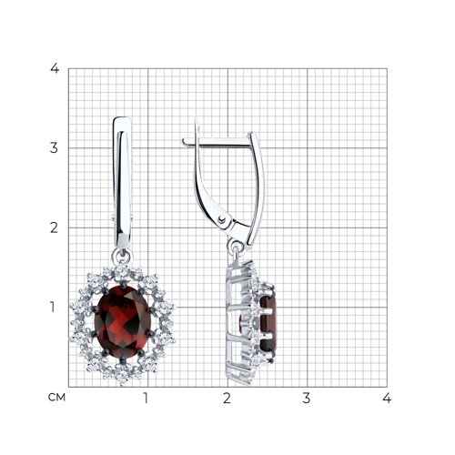 Серьги из серебра с гранатами и фианитами
